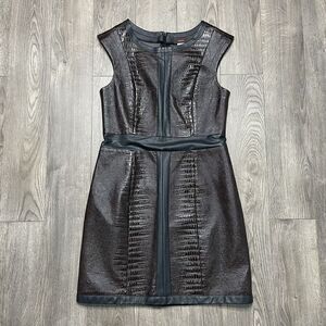 mark. Brown Black Faux Leather Sheath Dress Embossed Animal Print Size Medium