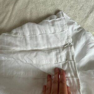 per una marks & spencer maxi linen and cotton blend pleated white skirt. lined and very good quality. has heft to it! straight with flare at bottom