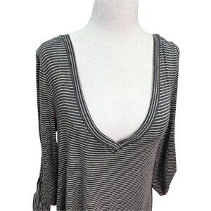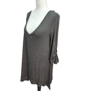 max Studio🖤Grey Stripe V- Neck Tunic Top Size M