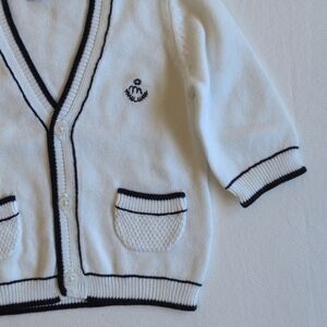 mayoral preppy white cotton knit cardigan sweater with navy trim 1-2 months baby