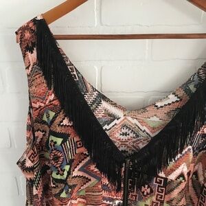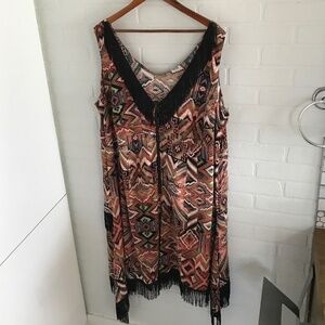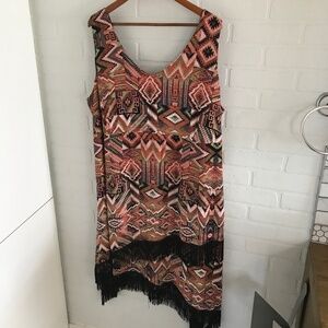 mblm Swing Dress Fringe Southwestern print Native Wrap Orange Black 4X