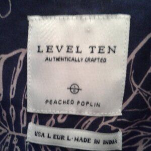used men's Level Ten shirt. Short sleeve. Pink-beige pattern with black spots. Size large.