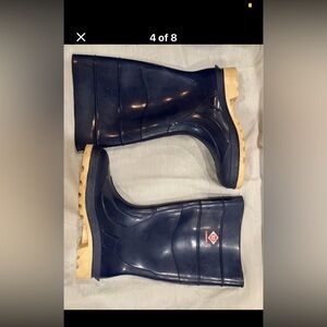 Vintage “red ball” brand men’s rubber boots size 8 ( equivalent to a women’s 9 1/2) navy blue with beige sole in good condition