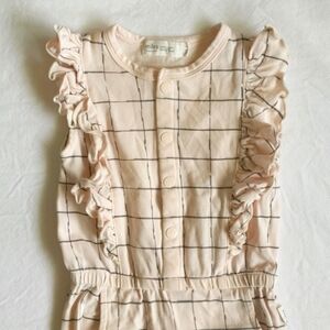 miles baby champagne pink grid print jumpsuit with ruffles, soft & has stretch, 3 months baby girl