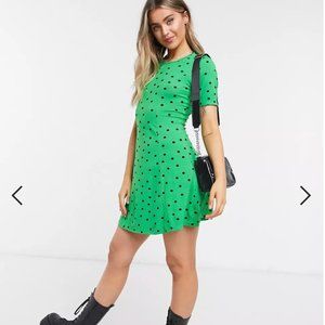 mini dress in green w/black dots - ASOS DESIGN size 12