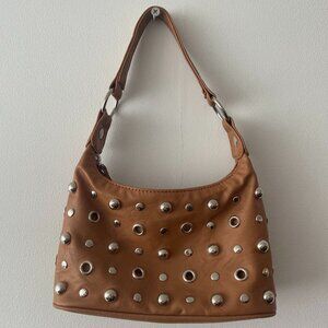 mini tan shoulder bag with silver details