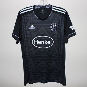 100% official licensed FORTUNA DUSSELDORF 2021-22 third shirt, featuring the commercial sponsors HENKEL and TOYO TIRES. Manufactured by ADIDAS in size Men's Medium. Made in Thailand original. No time for Far East fakes or modern reproduction bollocks. This is the real deal.