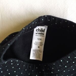 Carter's black leggings with micro mint polka dot print, 12 months, very good pre-loved condition
