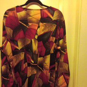 Slight A-line, long sleeved 18" to tie opening, 22" to back of sleeve.