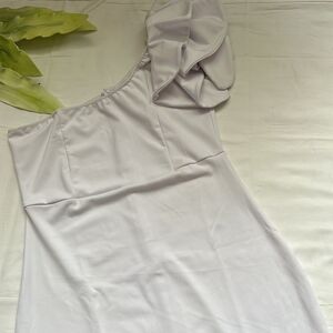 Design: Pleated cold shoulder body-con dress,Layered ruffle short sleeve ,one shoulder,finished with a hidden back zipper closure