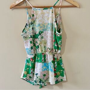 Chic floral spaghetti strap, floral Spring/Summer monteau top in green and white. Perfect for a stylish, feminine look. Size small. In good pre-owned condition, laundered and ready to wear.