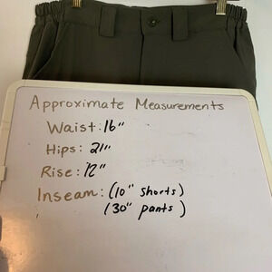 In gently used preowned condition. A few extra threads in stitching and a small app on the leg. Please see pictures for approximate measurements, care and fabric details and examples of condition. Please reach out if you have any questions.