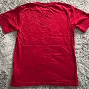 100% cotton. Red holiday tee. Size 6-7 years. Youth small. What you see is what you get. Forego the itchy ugly Christmas sweater battle with your kid and let him/her wear this comfy option instead. Smoke-free, cat-free home.