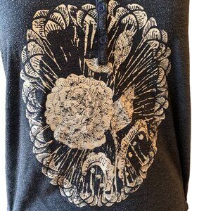 mySTYLE - Gray Tank Top with white flower print - banded neckline - Medium