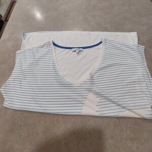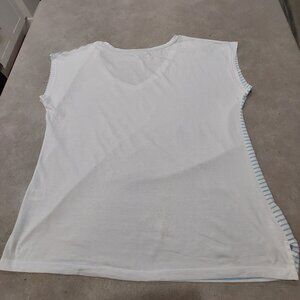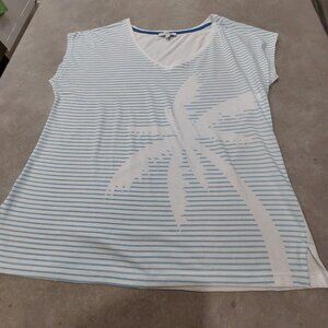 mySTYLE Women's Blue/White Stripe w/Palm Tree Print Cap Sleeves Top - Large