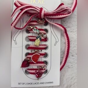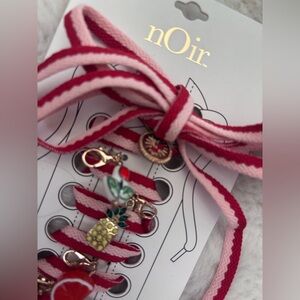 nOir Jewelry Red and Pink Shoe Lace Set with Charms
