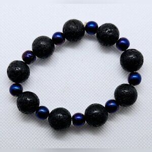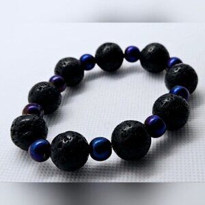 natural Volcanic Stone Chakra Balance Tiger Eye Bead Stretch Bracelet