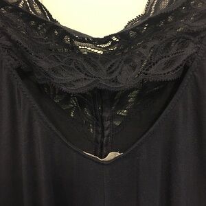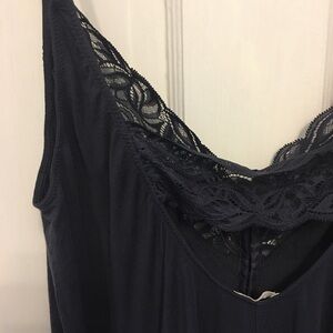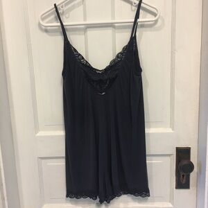𝅺navy blue teddy romper with lace trim and covered buttons