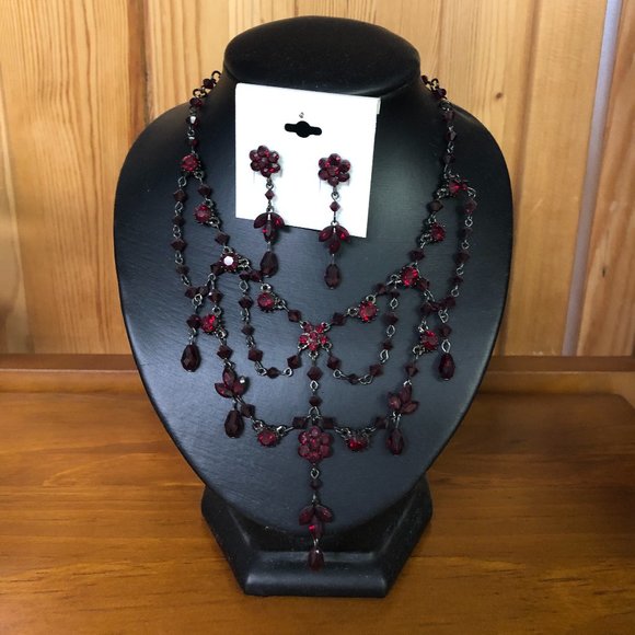 dark red swarovski stone necklace set