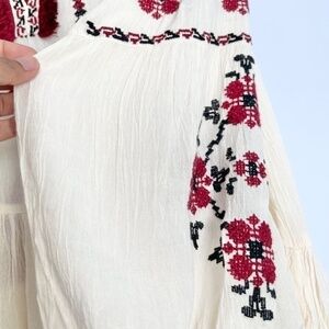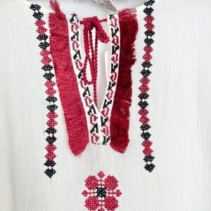 new Cute Option Ivory Embroidered Boho Peasant Top US S