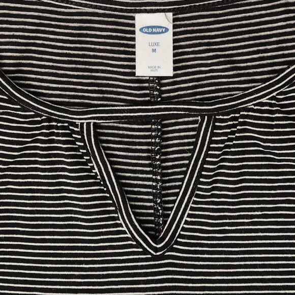 Lux fabric loose and flowy tank top by Old Navy In black and white stripes. Has a keyhole detail at front. 48 cm Pit to pit. Size Medium. Not worn, excellent condition.