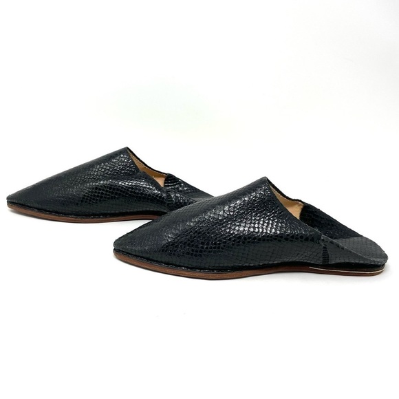 new Moroccan Black Snakeskin and Leather Babouche Slip On Mule Flats Size 37/ 7