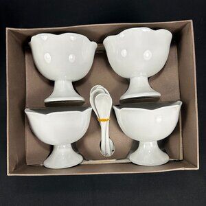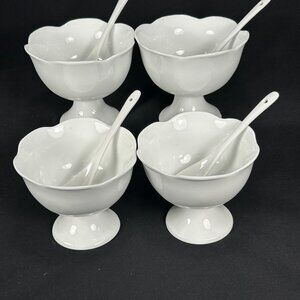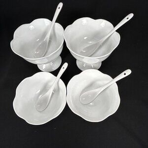 new set of 4 porcelain ice-cream/dessert bowls with spoon