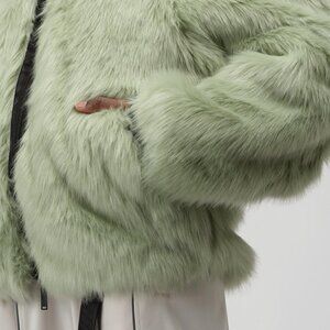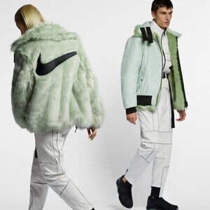 This Nike x Ambush Yoon Reversible Faux Fur Coat in Jade Horizon Black is in very good, pre-owned condition. There is one area on the back where the fur is lightly kinked due to storage - it should relax with wear or with proper storage. Size medium - please see pics for approximate measurements.