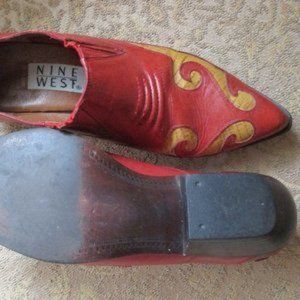 guc - showing a little bit of wear - a few small leather cracks - upper cuff of both booties. also, one small nick near the edge of one bootie.