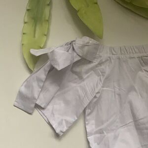 White trendy 💯% cotton off shoulder top with bow details on each sleeve. New, never worn.