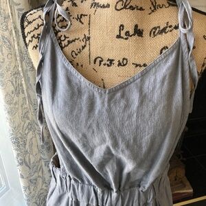 Not Perfect Linen Light Blue 100% Linen Cropped Jumper Romper BEAUTIFUL, EUC, Sz L. 100% soft linen. Have gotten so many compliments on this piece. Fully adjustable straps. Elastic waist.