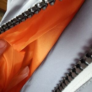New with defect. One of the hood snaps has pulled out of the hood. Could be repaired.