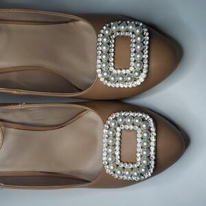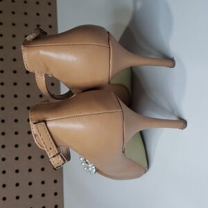 𝅺nude Gem Pearl Embellished Stiletto Heels Ankle Strap