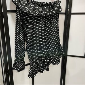 nwot [12] SAINT GENIES One-Shoulder Black & White Polka Dot Ruffle Mini Dress