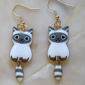 Cute pair of Himalayan or Siamese cat earrings, metal. Tails move.