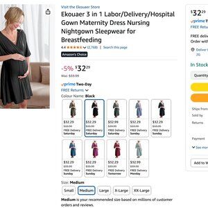 I bought this for labour and never used it. the material is stretchy and soft polyester with spandex, works for a nightgown and breastfeeding. elastic band around the waist and split front flap