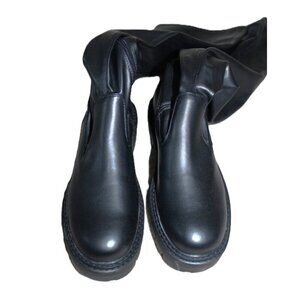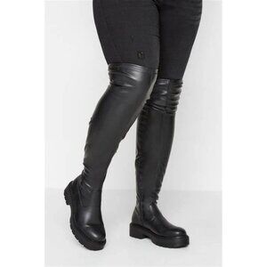 nwt ASOS Yours Clothing, Over The Knee Pull-On Chunky Cleat Boots in Black (11W)