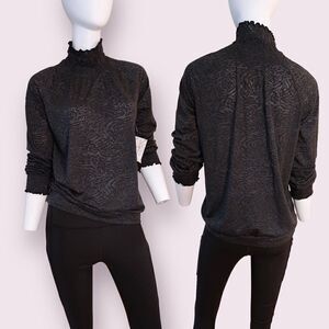 *nwt* Aventura Black Leopard Sheer Long Sleeve High Neck Blouse Sustainable