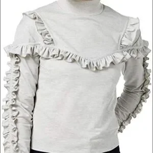 Ruffled at shoulders, chest and sleeves