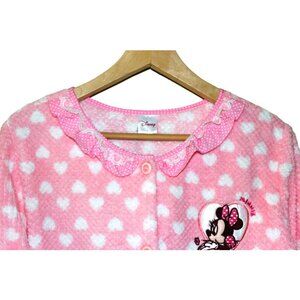 Step into cozy nostalgia with this officially licensed Disney Minnie Mouse pajama set, a rare find and still with original tags attached. Crafted from a luxuriously soft, Sherpa-like fabric, this two-piece set blends comfort with that signature Minnie charm.