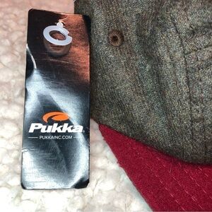 𝅺nwt Pukka Blizzard Tecnica Grey Red Wool Blend Cap Hat Adjustable One Size