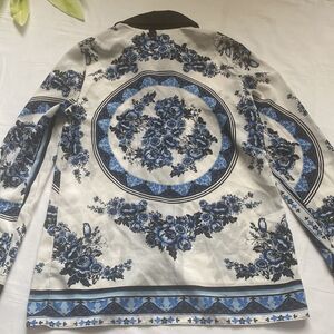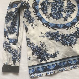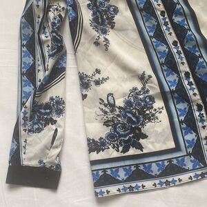 Floral print button down shirt by Ricki’s with black collar and sleeve hems. Classic and trendy. Pit to pit 19”, shoulder to hem 27.5”. New with tags.