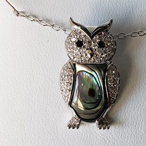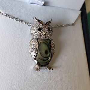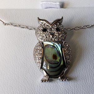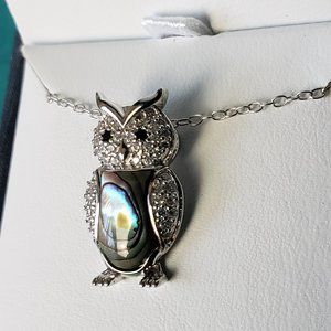 nwt Sterling Silver Abalone & Cubic Zirconia Owl Pendant Necklace
