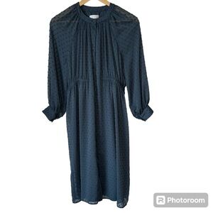 oak + fort swiss dot midi dress long sleeve size xs oversized dark sage green