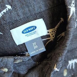 old navy gray giraffe print woven cotton safari camp shirt 2T toddler boys