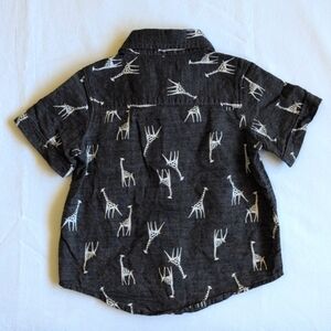 old navy gray giraffe print woven cotton (linen feel) safari style button down short sleeve collared camp shirt, 2T toddler boys