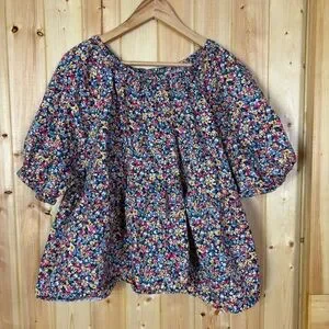 old navy micro Floral-Print Puff-Sleeve Babydoll Top 2X Spring Cottagecore color