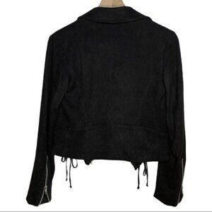 olivaceous Double Zipper Faux Suede Lace Up Black Moto Jacket Size Small