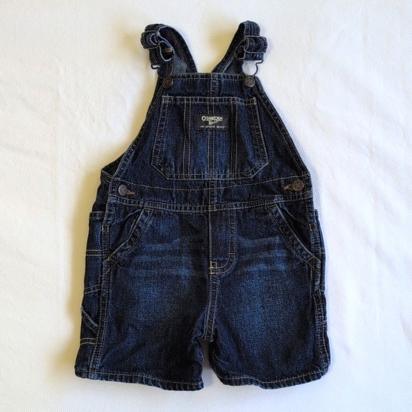 oshkosh b'gosh vestbak classic cotton denim dark wash shortalls / jeans shorts overalls, 18 months baby, unisex gender neutral