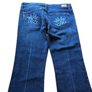 In excellent pre-owned condition these are really well made jeans, low rise, size 30 which is a size 10. 98% cotton, 2% spandex.